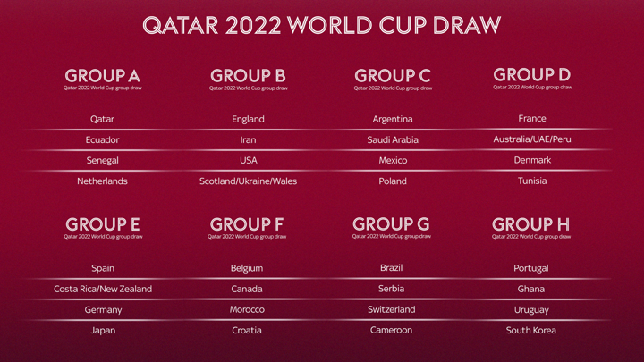 Group A: Qatar, Ecuador, Senegal, Netherlands